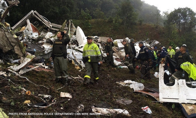 The crash killed at least 71 people during a charter flight to Medellin, including members of the Brazilian Chapecoense soccer squad on its way to the Copa Sudamericana finals. Three players, two crew members and one journalist survived, Colombian authorities said.