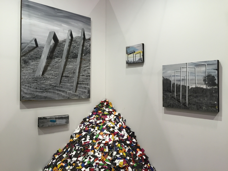 For “Discoveries,” Cabangis exhibited “Echoes,” a show he considers as a spiritual continuation of his Art Informal exhibit last year. “I just took off from there,” he says. To qualify for “Discoveries,” Cabangis and Art Informal submitted a proposal to Art Basel Hong Kong. “It’s basically about how the 2D and 3D elements of my works connect, how the intervention that I did in the paintings transcends the actual exhibition space itself, how the 3D installation creates a bridge to the actual space and how the painting does the same job towards the factual,” he says.