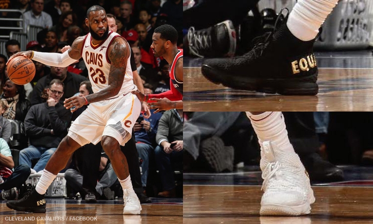 James took the court wearing one white and one black shoe for the Cleveland Cavaliers against the Washington Wizards in an NBA game in the national capital.