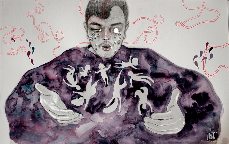 “I see my biggest nightmare as an interpretation of an actual recurring nightmare I get every now and then. I’d always wake up from the dream crying because of how vivid it all felt. The scene is a regular dinner with my family. While we’re talking having idle family talk, I turn to my sister and begin breaking her limbs one by one. She’d always be staring right at me with a blank expression while I snap her joints effortlessly. What I got from dismembering my sibling was that the thing I fear most is to hurt the people I care about.”