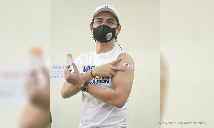 The Manila Public Information Office on Sunday posted a photo of him getting his first dose at the Osmeña High School in Tondo. The vaccine was administered by Manila Vice Mayor Honey Lacuna, who is a doctor.