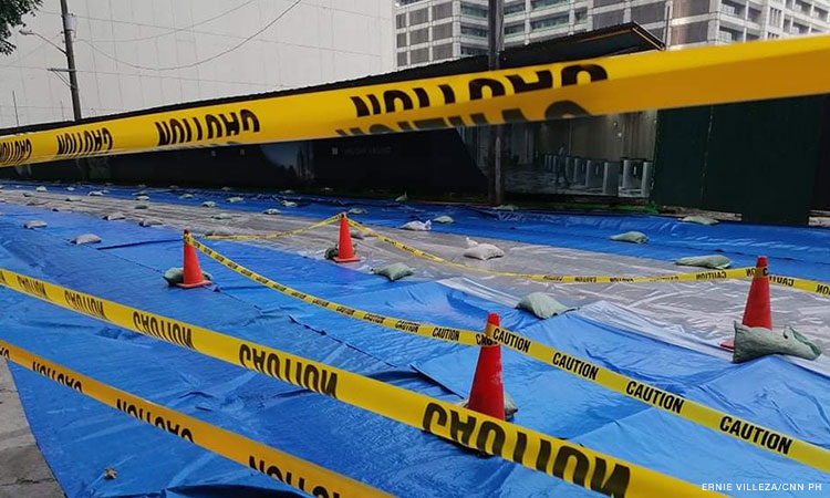 The cracks stretched up to 50 meters between a construction site and a condominium. Pasig City’s rescue staff placed barricades on the road and covered it with tarpaulin.