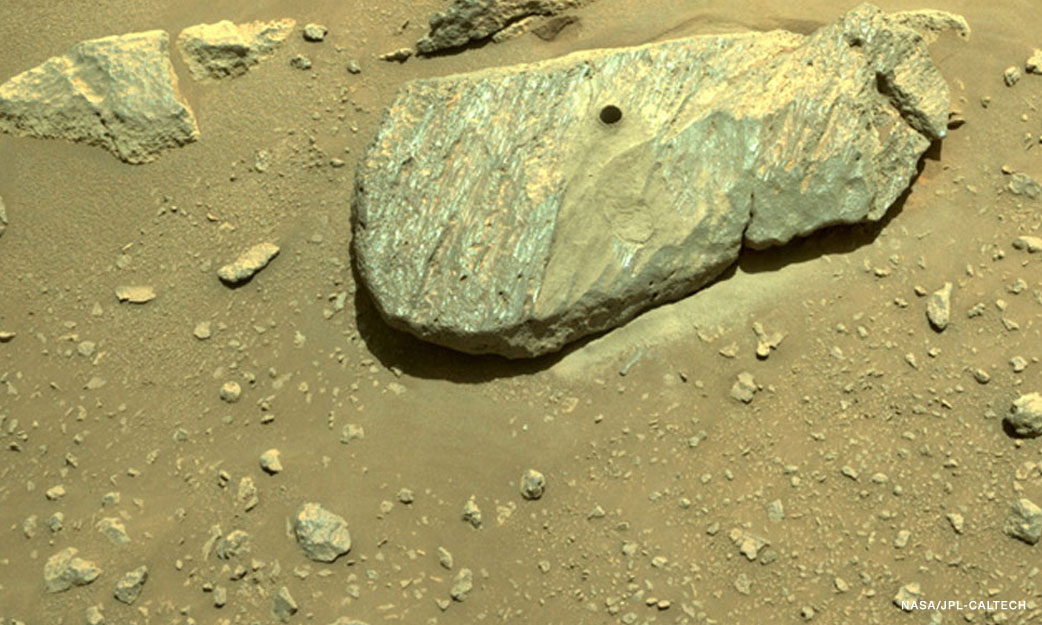 Perseverance is currently exploring the Citadelle location in Jezero Crater, which — billions of years ago — was once the site of an ancient lake. The rover’s specific target was a rock called Rochette, which is about the size of a briefcase and is part of a half-mile ridgeline of rock outcrops and boulders.