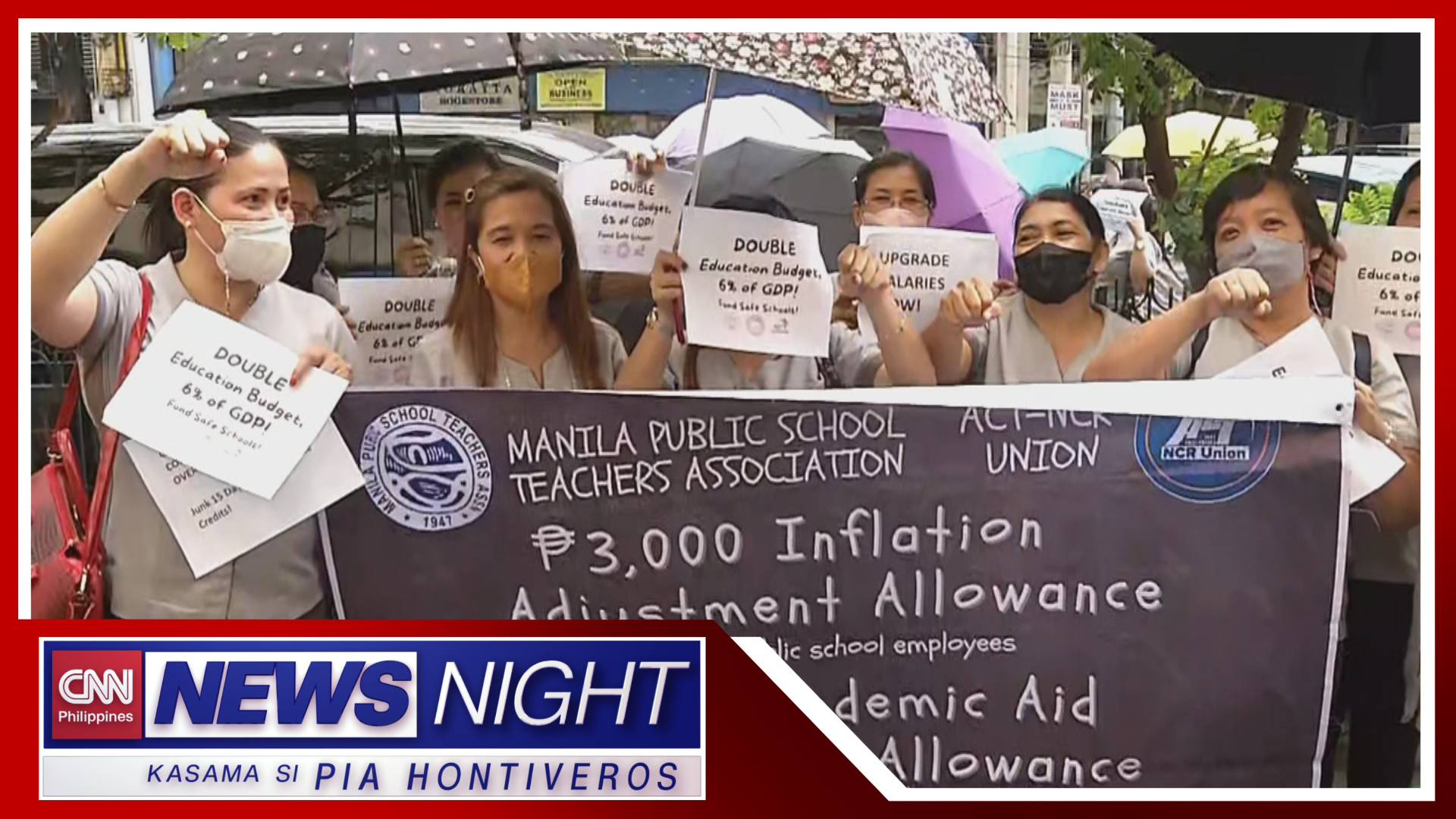 Isang protesta ang isinagawa ng ilang mga guro ngayong araw. Sigaw nila, umento sa sahod. ADVERTISEMENT Share this ArticleTagged:CNNPrevious ArticleDMW eyes scholarship fund for healthcare workers to be deployed abroadNext ArticleUAAP: La Salle crushes UST for breakthrough victoryStanley Gajete, CNN Philippines Other News STATEMENT ON THE CESSATION OF OPERATIONS OF CNN PHILIPPINES January 29, 2024 Duterte threatens Pres. Marcos with ouster due to Charter change ... January 29, 2024 Thailand’s Anntonia Porsild to visit Manila on Jan. 29 January 28, 2024 Wanderland 2024 announces artist lineup January 28, 2024 Australian Open men’s final: Jannik Sinner looking to cap star ri ... January 28, 2024 Biden seizes on tougher border measures as he tries to fend off T ... January 28, 2024