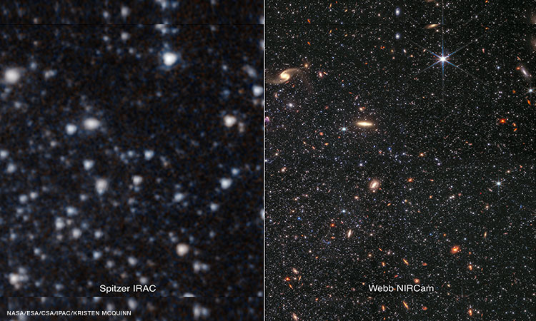 The Webb telescope, which launched in December 2021, is the most powerful space observatory to date. It’s capable of detecting the faint light of incredibly distant galaxies as they glow in infrared light, a wavelength invisible to the human eye.