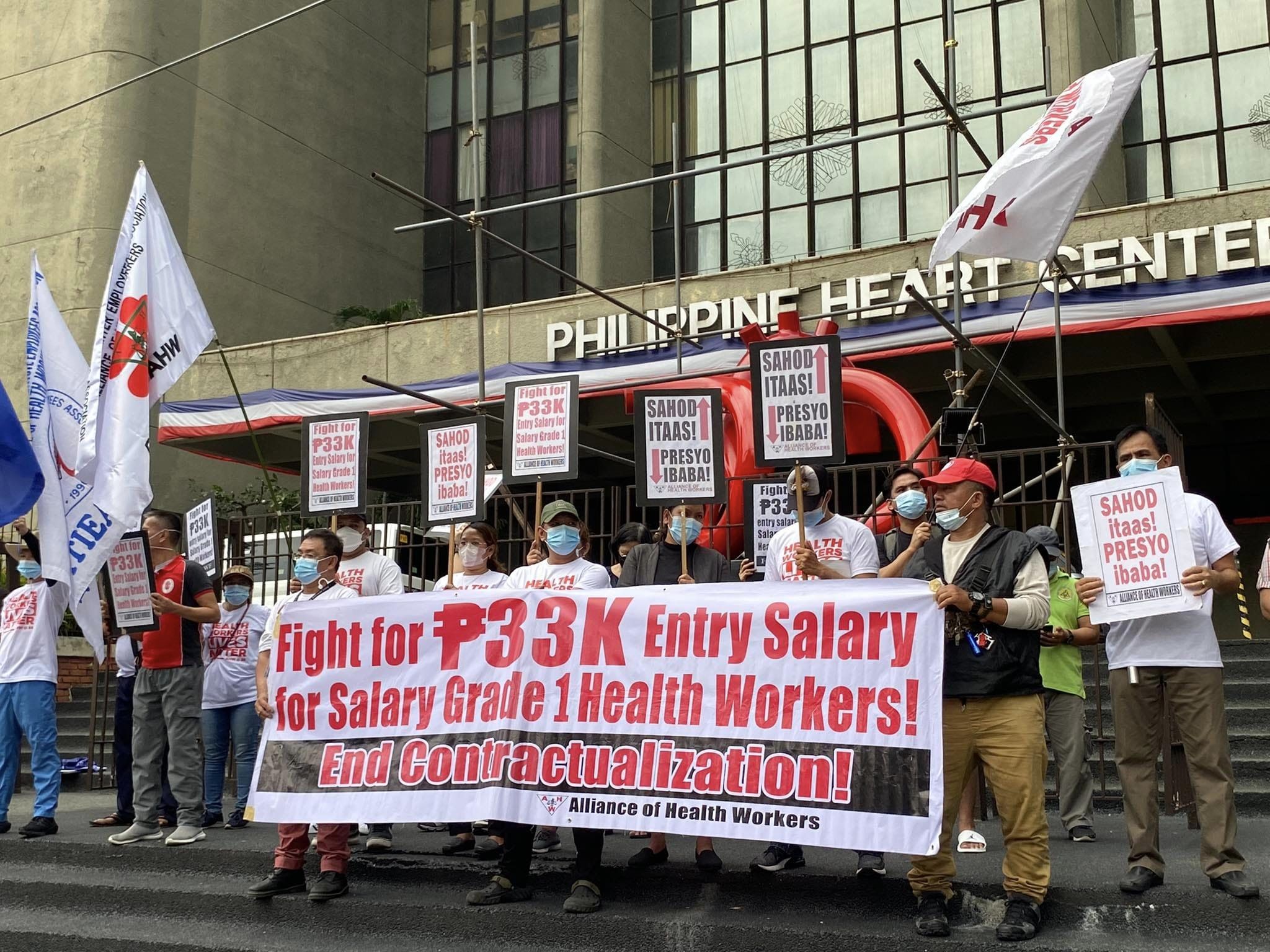 The Alliance of Health Workers said it is demanding a ₱33,000 entry-level salary for all public and private health workers in the country, as it cited the rising prices of basic commodities. Health workers’ groups have long attributed the exodus of Filipino nurses to low wages in the country.