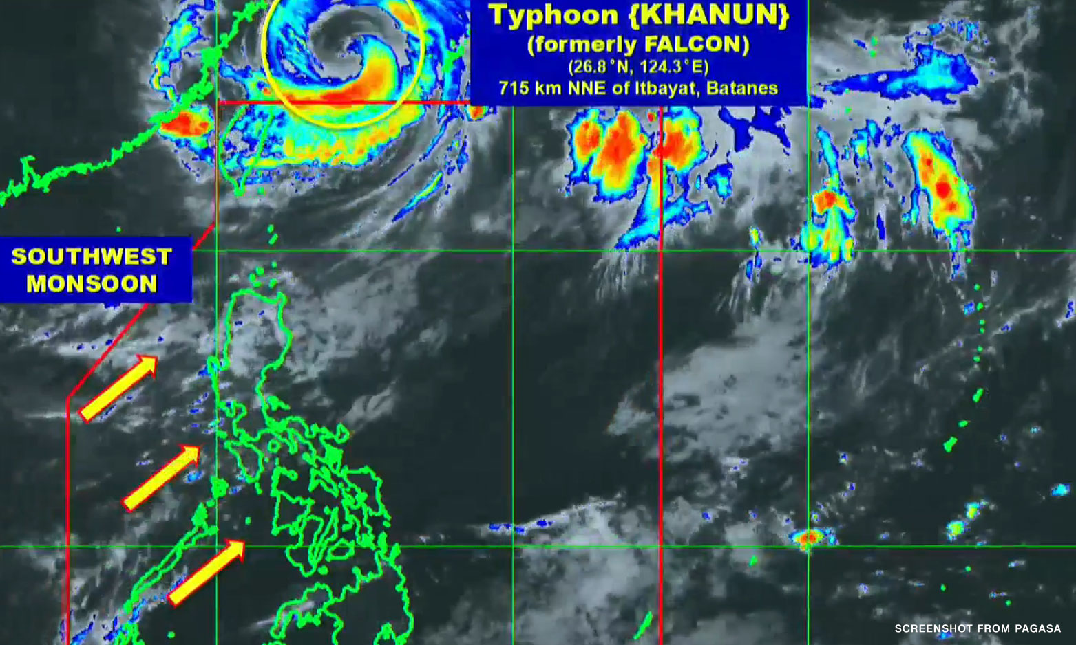 Khanun, which was called Falcon while inside the PAR, was last spotted 715 kilometers north-northeast of Itbayat, Batanes, packing maximum sustained winds of 130 kilometers per hour (kph) near the center and gustiness of up to 160 kph.
