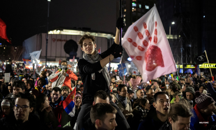 Kragujevac, Serbia – Thousands of students descended upon the central Serbian city of Kragujevac on Saturday in what was expected to be the biggest show of anger yet against the government over a deadly railway disaster in November.