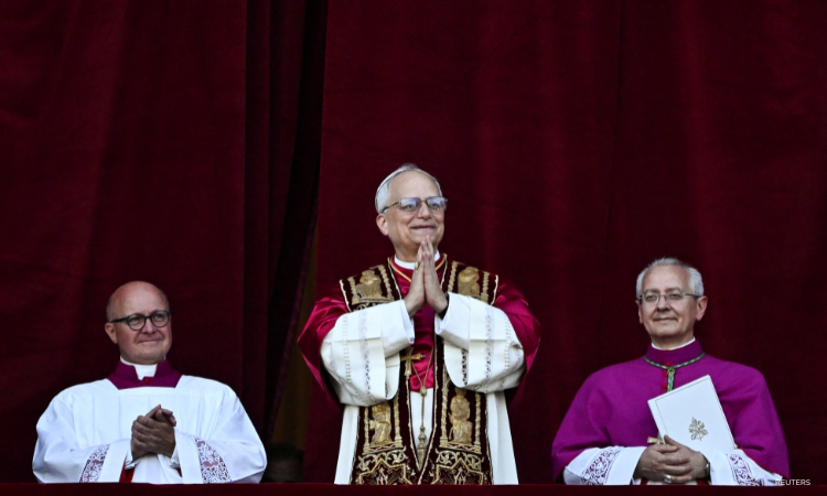 Newly elected Pope Leo XIV, Cardinal Robert F. Prevost of the US, appears on the balcony of St. Peter’s Basilica at the Vatican, May 8. (Dylan Martinez/Reuters)