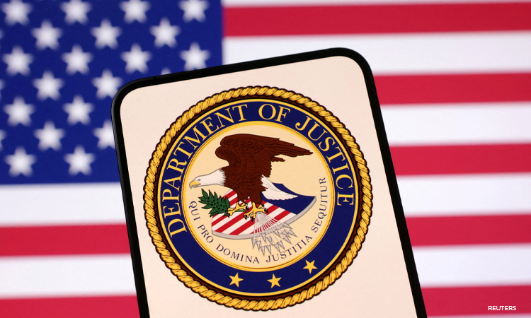 United States Department of Justice logo and U.S. flag are seen in this illustration taken April 23, 2025. REUTERS/Dado Ruvic/Illustration/File Photo