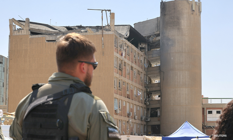 The major public hospital, which serves around 1 million people living in southern Israel, sustained extensive damage in the strike. Several wards were completely destroyed, with debris scattered across the parking lot and surrounding walkways.
