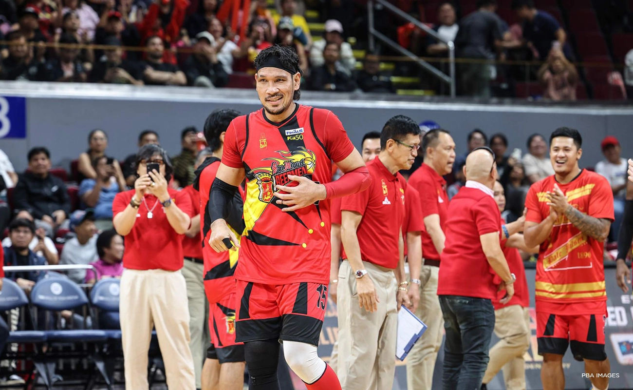 The 6-foot-10 from Cebu was recognized on Wednesday, Jan. 28, before Game 4 of the finals between the Beermen and TNT Tropang 5G at the Mall of Asia Arena in Pasay City.