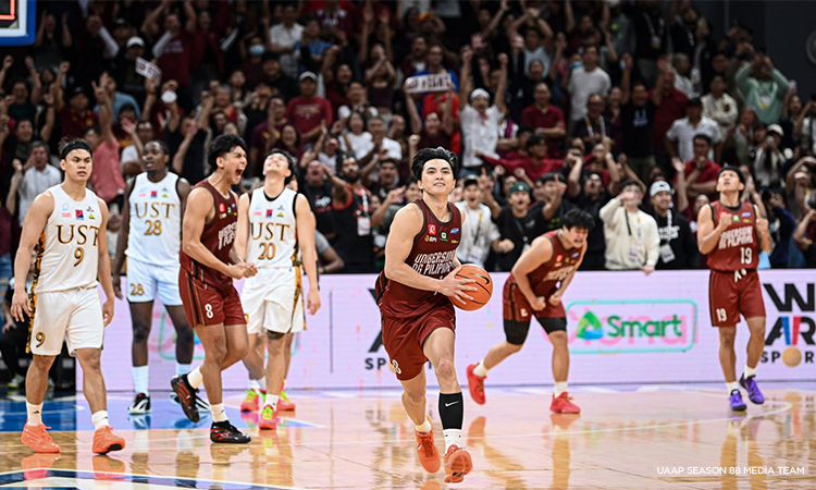 Metro Manila, Philippines - The University of the Philippines (UP) Fighting Maroons scored a payback 89-88 victory over the University of Santo Tomas (UST) Growling Tigers in the UAAP Season 88 men's basketball tournament on Wednesday, Nov. 5, at the Mall of Asia Arena in Pasay City.